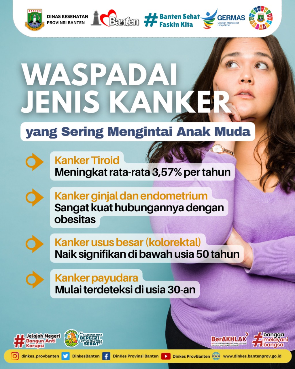 Sumber Gambar :Serang, 27 November 2025 - “Obesitas di usia muda bukan sekadar soal penampilan. Berat badan berlebih bisa meningkatkan risiko berbagai jenis kanker di kemudian hari. Yuk, kenali bahayanya sejak sekarang dan mulai langkah kecil menuju hidup lebih sehat!”