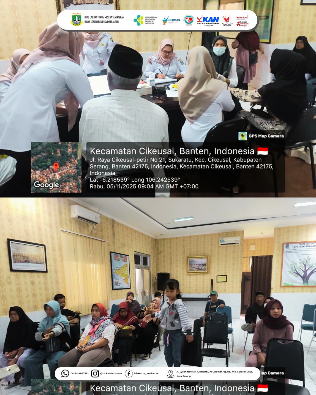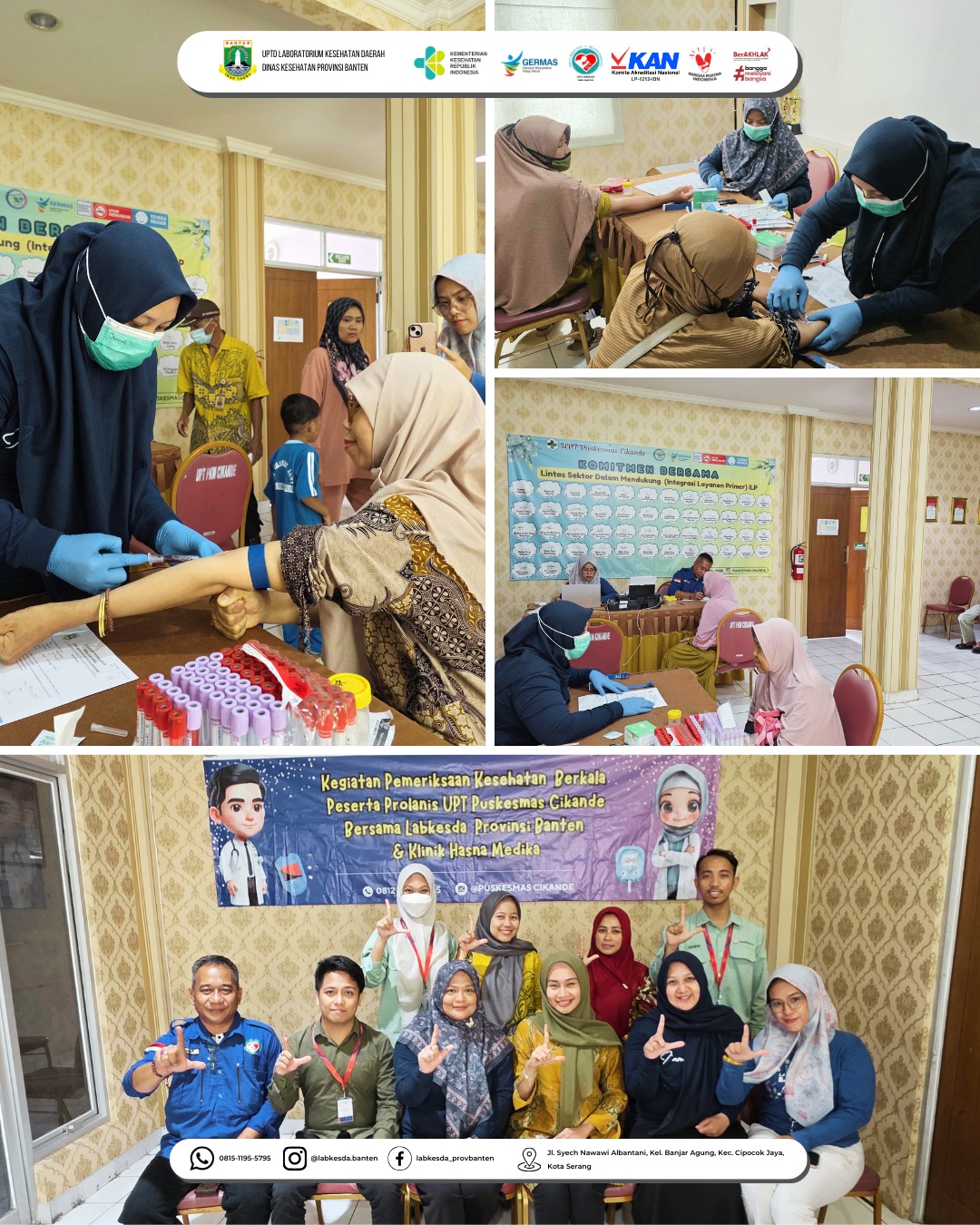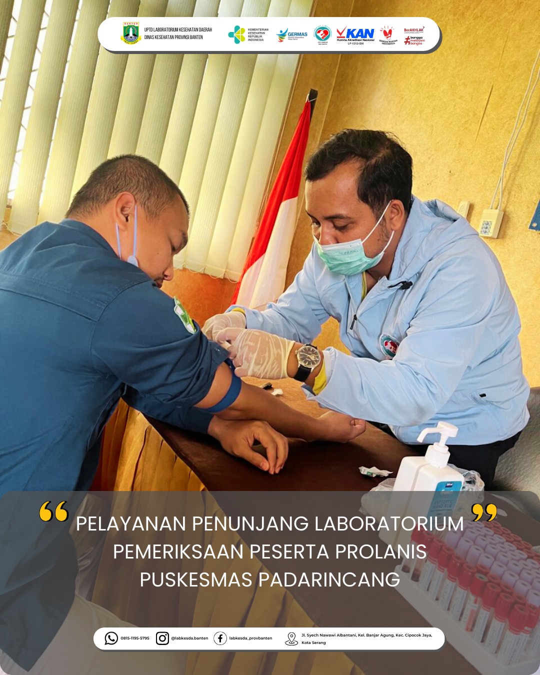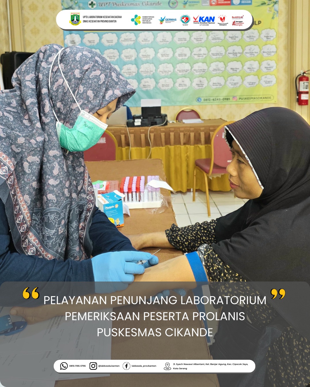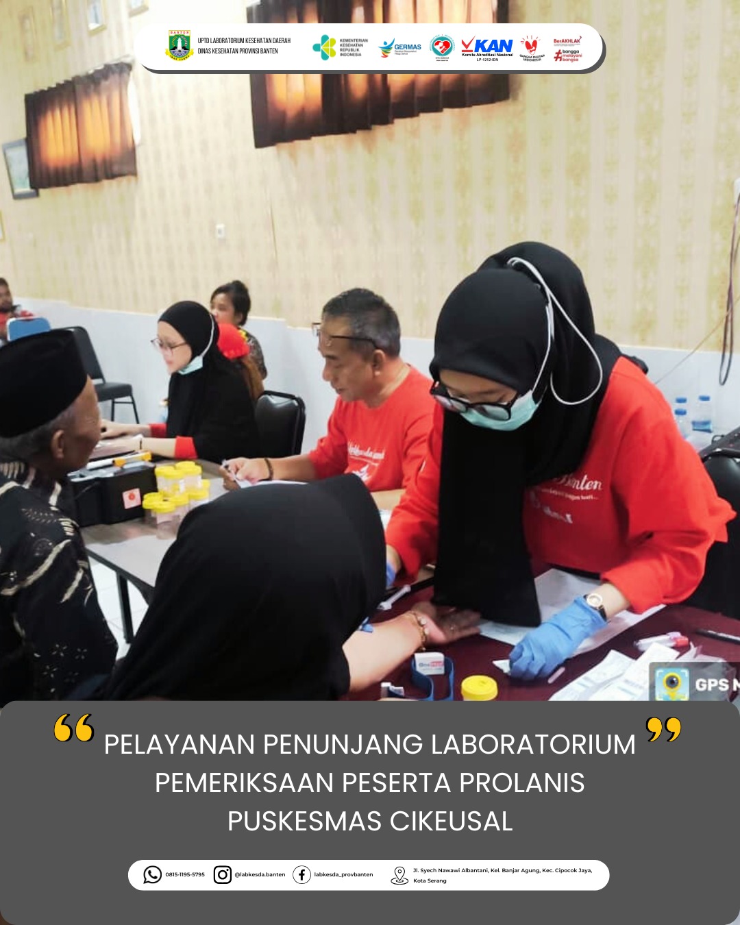 Kegiatan pemeriksaan penunjang laboratorium peserta prolanis di Puskesmas Cikeusal, Puskesmas Mancak, Puskesmas Cikande, Puskesmas Padarincang.