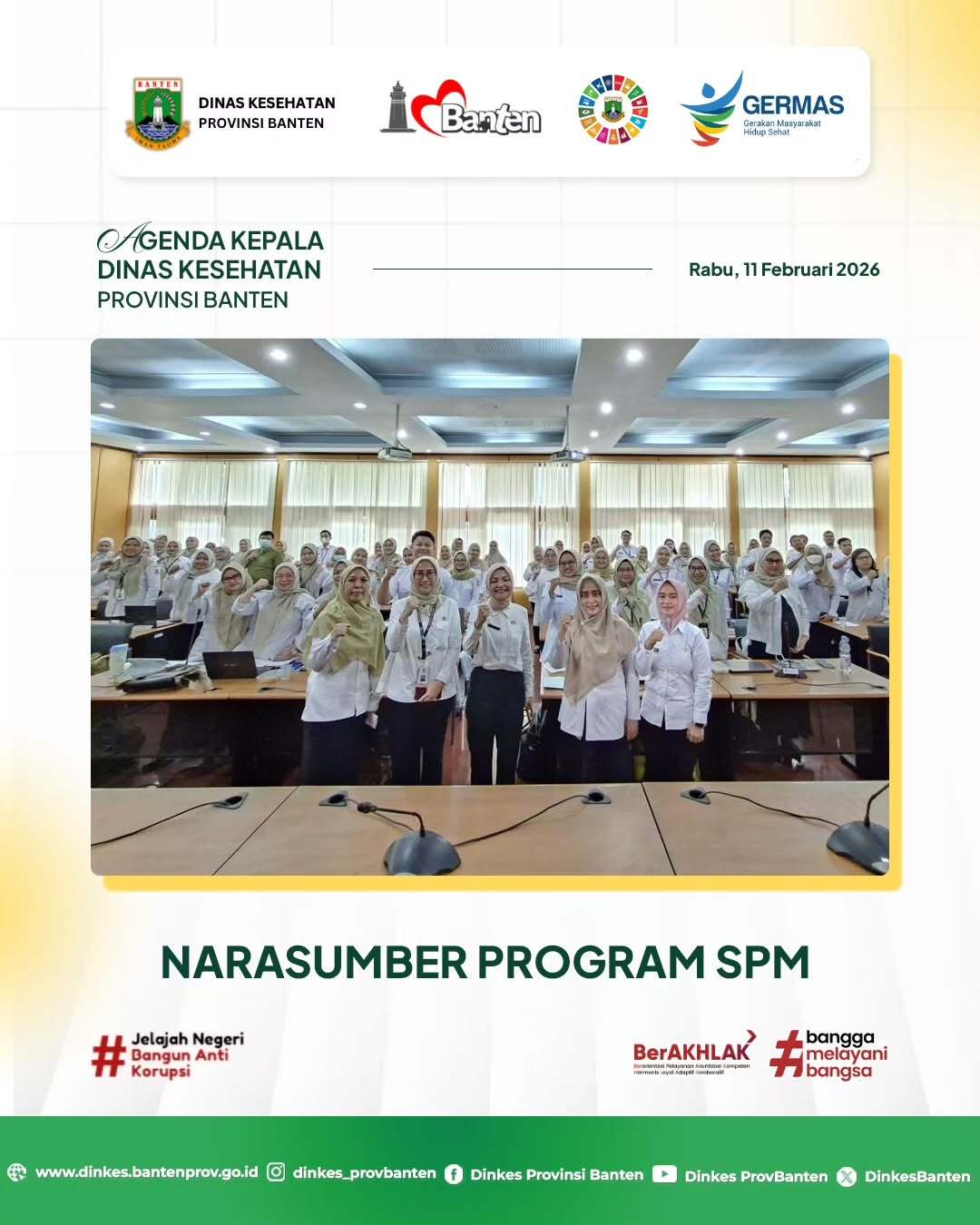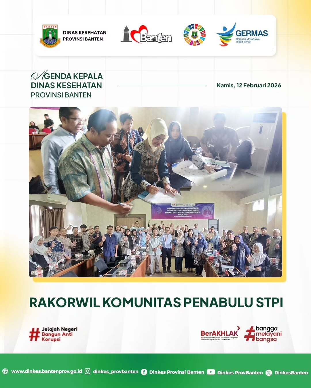 Melalui koordinasi dan kolaborasi lintas sektor, Dinas Kesehatan Provinsi Banten terus berkomitmen meningkatkan kualitas pelayanan kesehatan, memperluas akses layanan, serta memastikan program kesehatan berjalan optimal untuk masyarakat. Bersama kita wujudkan Banten Sehat! 💚